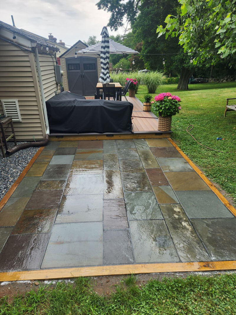 Bluestone patios, granite walls, fire pits, outdoor kitchens and custom masonry across Connecticut.