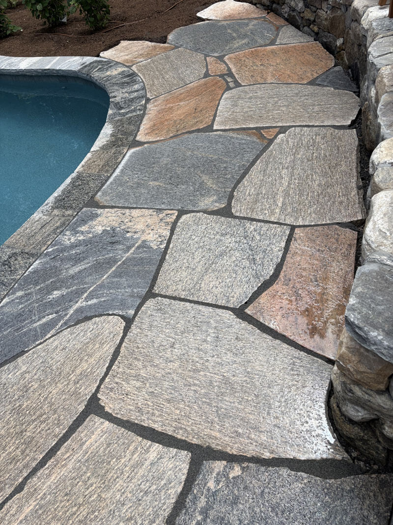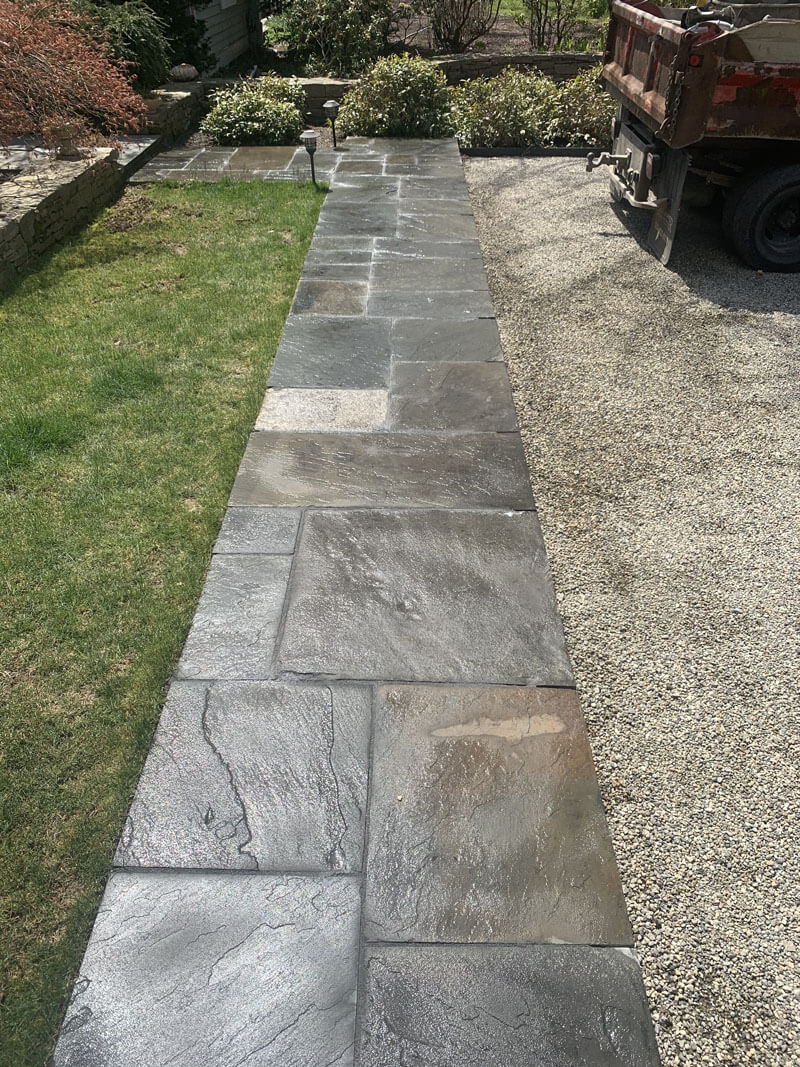 We work with durable natural materials including bluestone, granite, and fieldstone.